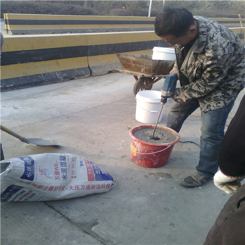 大慶萬通新源科技有限公司獨有的混凝土路面高強速補料,是水泥混凝土路面病害修復的好材料。疲勞、凍融循環、彎曲壓力、滲水和基層破壞等原因都會引起水泥路面的破損,從而帶來高昂的維護費用。與以往的剛性修補方法不同,混凝土水泥路面維修速補膠提供了一種獨特的柔性修補產品和技術,高柔性、高抗拉性,可跨伸縮縫施工和高抗壓性使得混凝土快補產品為水泥混凝土路面提供了******性的修補。傳統的剛性修補方案,如環氧砂漿和快干水泥產品,由于其自身的粘結失效,抗疲勞性低以及與原路面不同的伸縮系數,修補面會在短時間內失效或產生新的裂縫,需要反復修補,有效期短且費用高昂。大慶萬通新源科技有限公司的混凝土水泥路面維修速補膠可以隨原路面一起伸縮,移動,從而避免了粘結失效和產生新裂縫。萬通快補產品優異的粘結性、柔韌性和高防滑性,特別適用于水泥路面的淺層粘合修補,多邊角混凝土板層修補,跨伸縮縫修補以及路面沉陷修補。萬通混凝土病害修補料針對混凝土起皮起沙、斷板裂縫、蜂窩麻面、坑槽露石子、漏筋掉皮、橋梁的掉皮漏筋快速通車使用時間長。應用萬通快補產品,施工后一天就可以恢復交通。大慶萬通新源科技有限公司的萬通水泥路面維修速補膠適用于高速公路、機場路面、農村村村通路面、廠坪、學校操場、市區公路、小區路面、橋梁、水泥路面的修補。使用萬通特快補材料修補路面可以一勞永逸! 水泥地面起砂怎么辦,混凝土修補劑混凝土地面起砂,混凝土地面修補,地面起砂怎么辦,